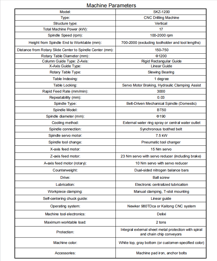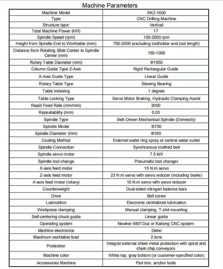 1. The machine uses a BT50 machining center spindle. Spindle model: BT50-190 Heavy Duty. Compatible with U-drills and boring tools.